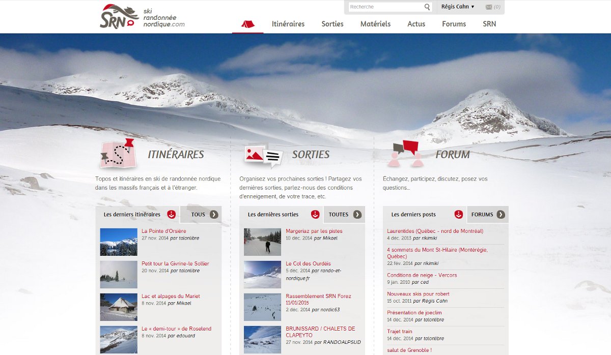 Actualités > Ski de Randonnée Nordique FranceLe site référence du ski de randonnée nordique à 7 ans ! Skirandonneenordique.com a été créé en septembre 2007. Depuis, SRN a tracé, hors des sentiers battus son identité, sa communauté de passionnés et a permis à la pratique du Ski de Randonnée Nordique de sortir du bois. En sept ans, l’activité SRN a évoluée, les technologies web ont explosées, il fallait donc remettre le site au goût du jour. Découvrez le nouveau Skirandonneenordique.com !