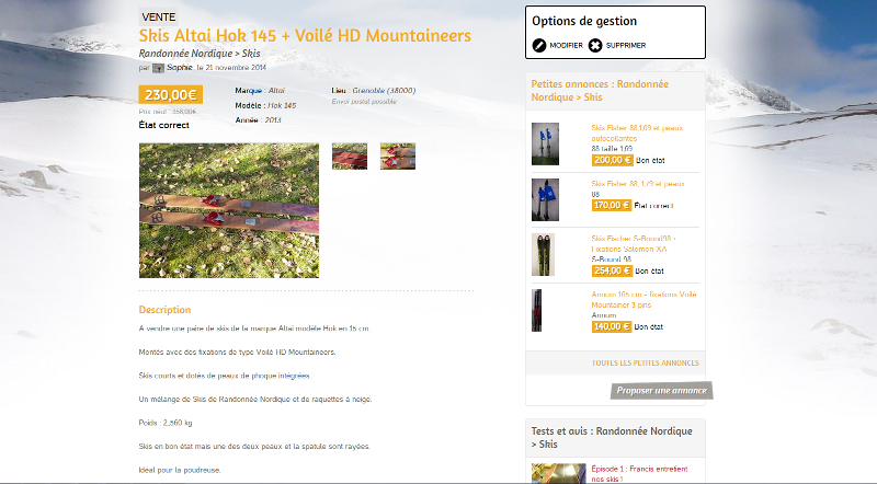 Grâce au nouveau site Skirandonneenordique.com, nous vous proposons une nouvelle rubrique intitulée « petites annonces ». Elle remplace la catégorie « achat, vente, dons » du forum pour offrir plus de visibilité au matériel outdoor que vous souhaitez vendre ou acheter.