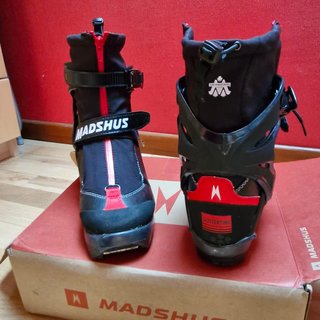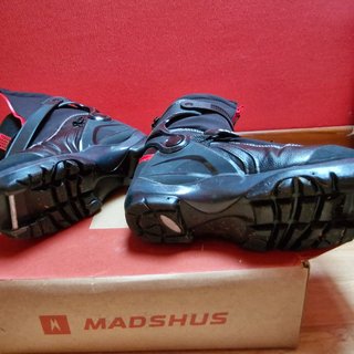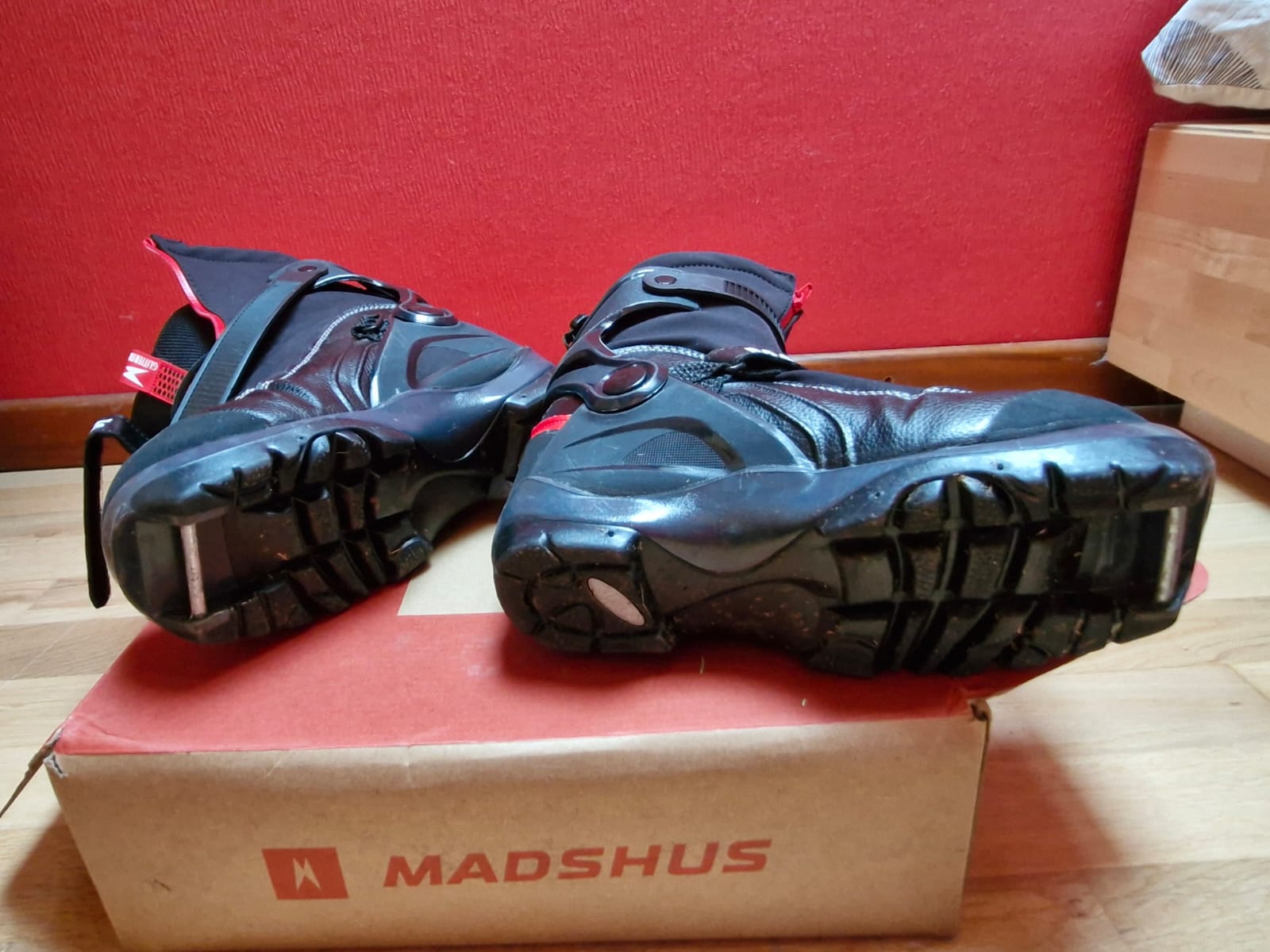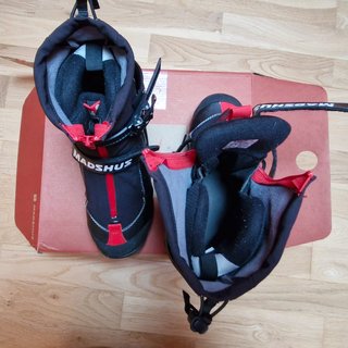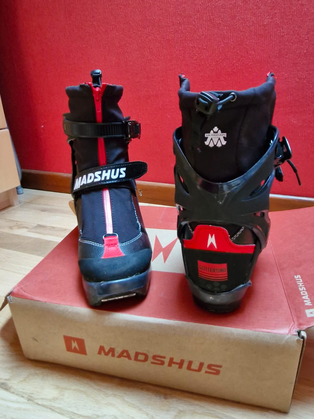 Chaussures de ski nordique montante de couleur bleue foncé / rouge. Achetées neuves il y a 4 ans mais très peu utilisées (car peu de pratique du ski nordique sur cette période). Bon état, à l'extérieur comme à l'intérieur. La pointure est du 37 mais ces chaussures chaussent" assez petit" (c'est un "petit 37).