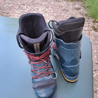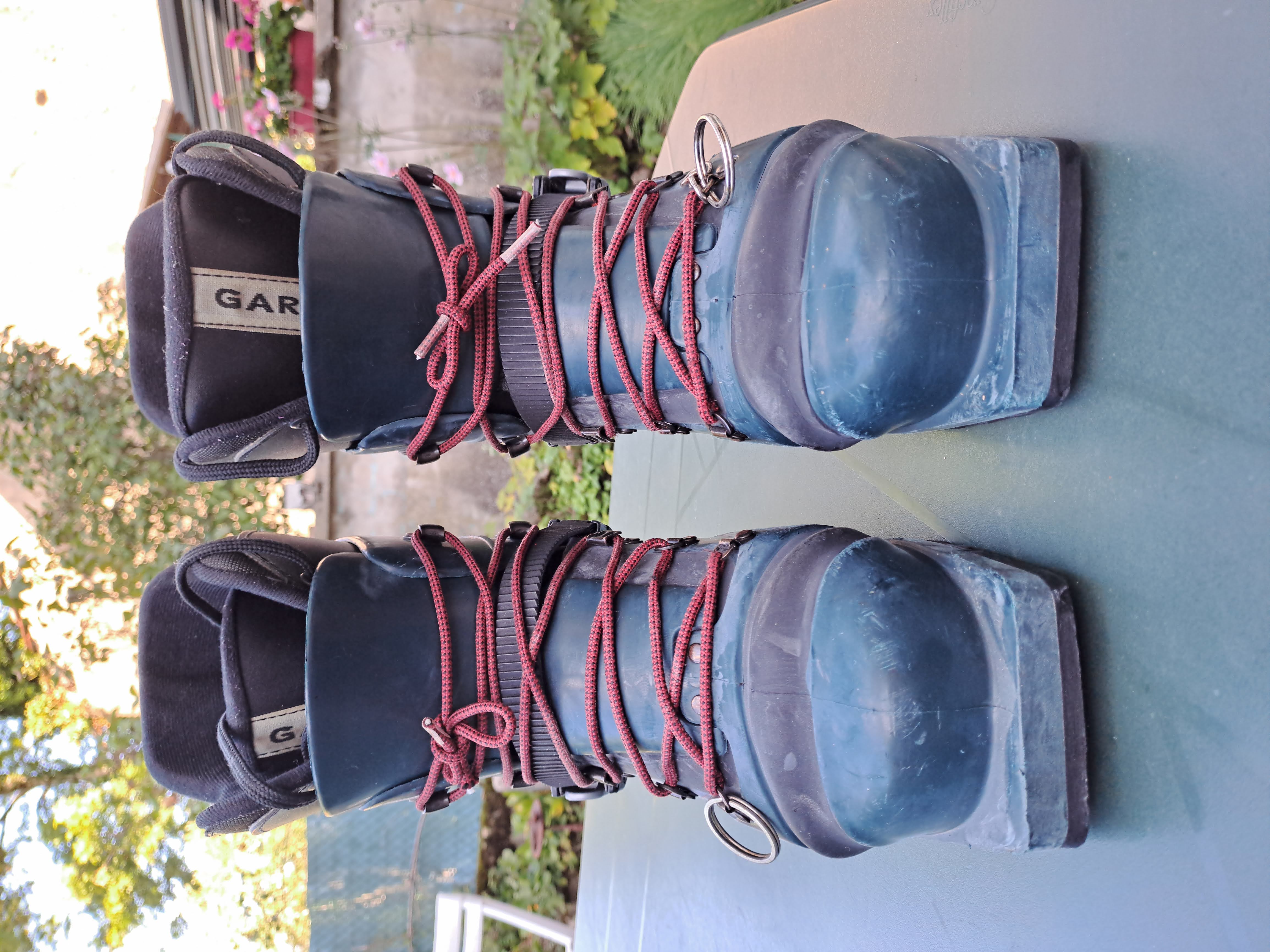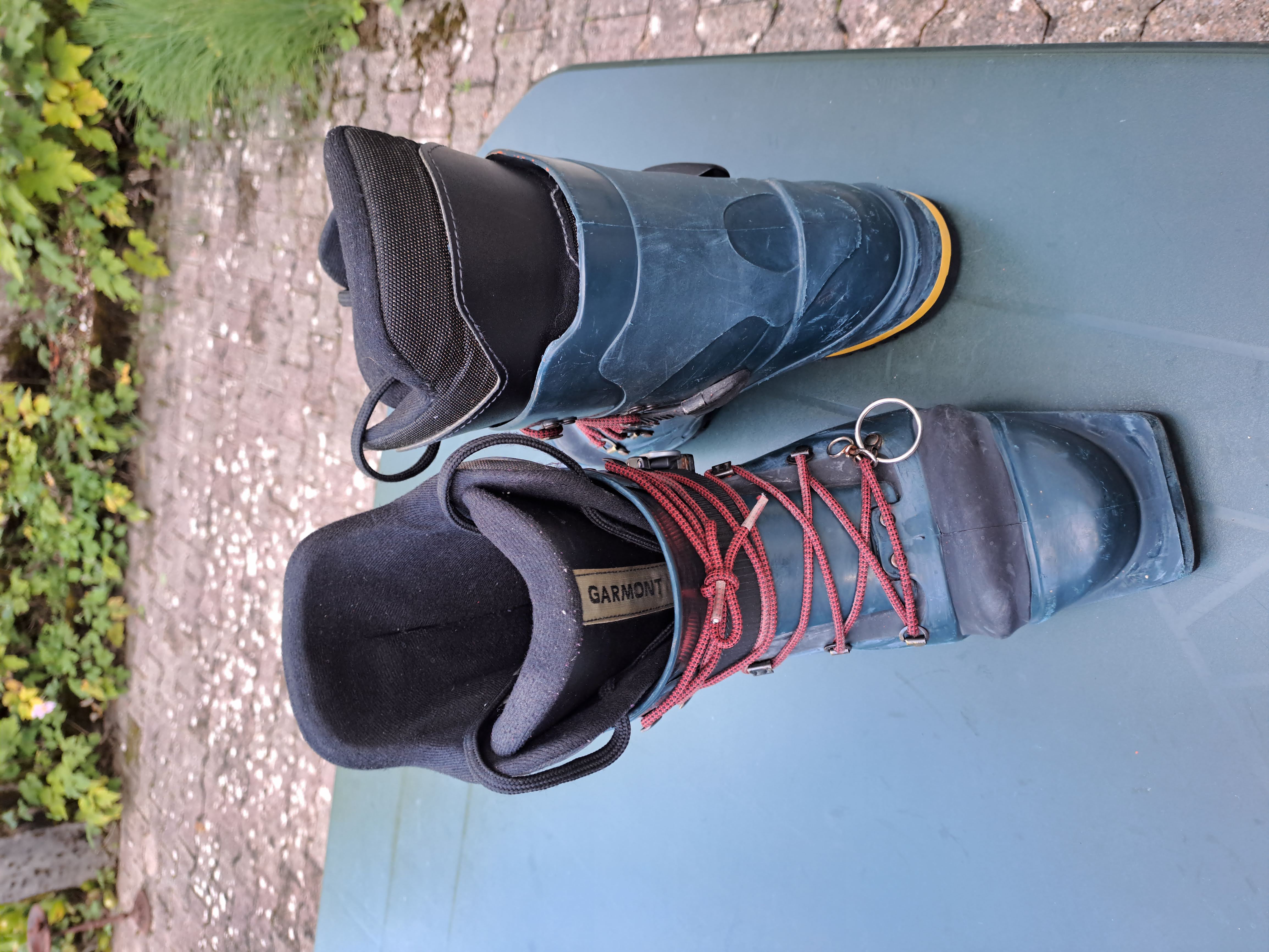 A vendre cette paire de chaussures de SRN et telemark, Garmont Excursion, c'est le 1er model d'avant 2012, en taille 42. Elle a été bien utilisée, tant en SRN (idéale en terrain bien vallonné) qu'en rando telemark, où sa légèreté, son flex et sa rigidité en torsion son appréciables. L'ensemble reste bien sûr fonctionnel, compatible 3 pins et fix à câble...