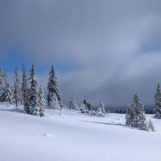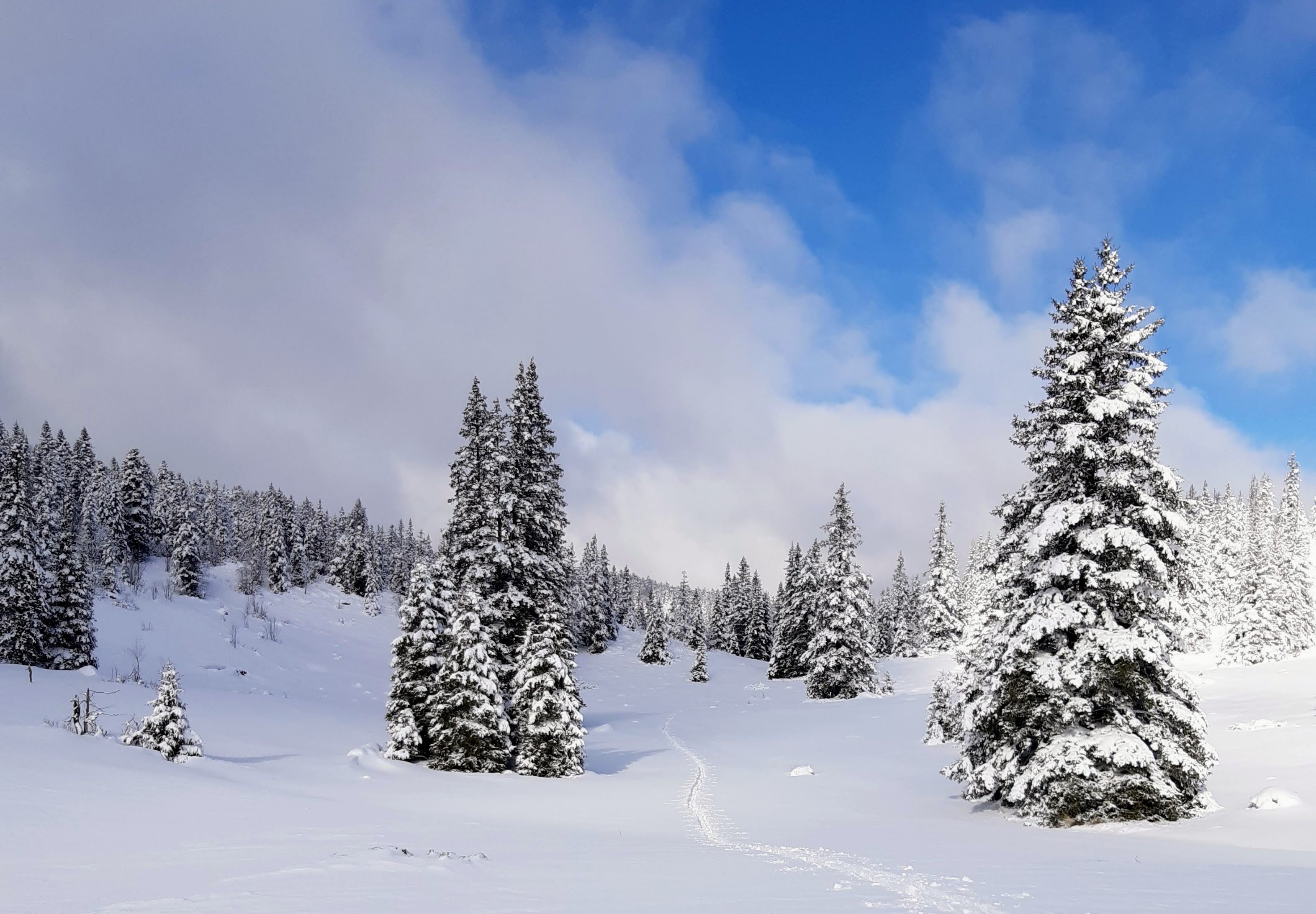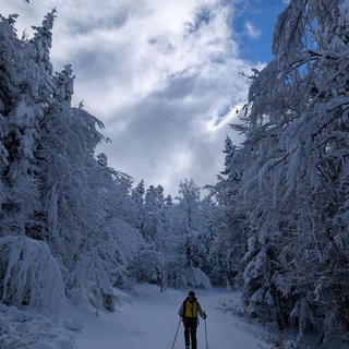 Après la première neige de la semaine passée qui fut totalement lessivée par les pluies lundi dernier, la voila de retour et en quantité. Aussitôt tombée, aussitôt sur les skis! Super sortie avec cette quantité de neige. On démarre par un chemin balisé de raquette pour rejoindre rapidement la route forestière de pré valet jusqu'a la clairière de la Sarna, puis direction col de la Sarna et descente sur Darbounouse. Ambiance superbe et sauvage, les uniques traces que nous voyons sont celles des différents habitants des lieux. Un petit demi tour sur 500m avant de prendre plein nord pour rejoindre le carrefour de la royale... Orientation pas évidente au début pour se retrouver sur le petit chemin noir qui nous emmènera au carrefour. Petit crochet pour aller trouver la table qui nous attend pour le casse croute au niveau d'une butte en bord de la piste de la Coinchette. Pistes en plein damage ce jour sur Herbouilly, on les empruntera pour un retour rapide depuis la royale vers Roybon puis le parking de départ. Balade à faire et à refaire!