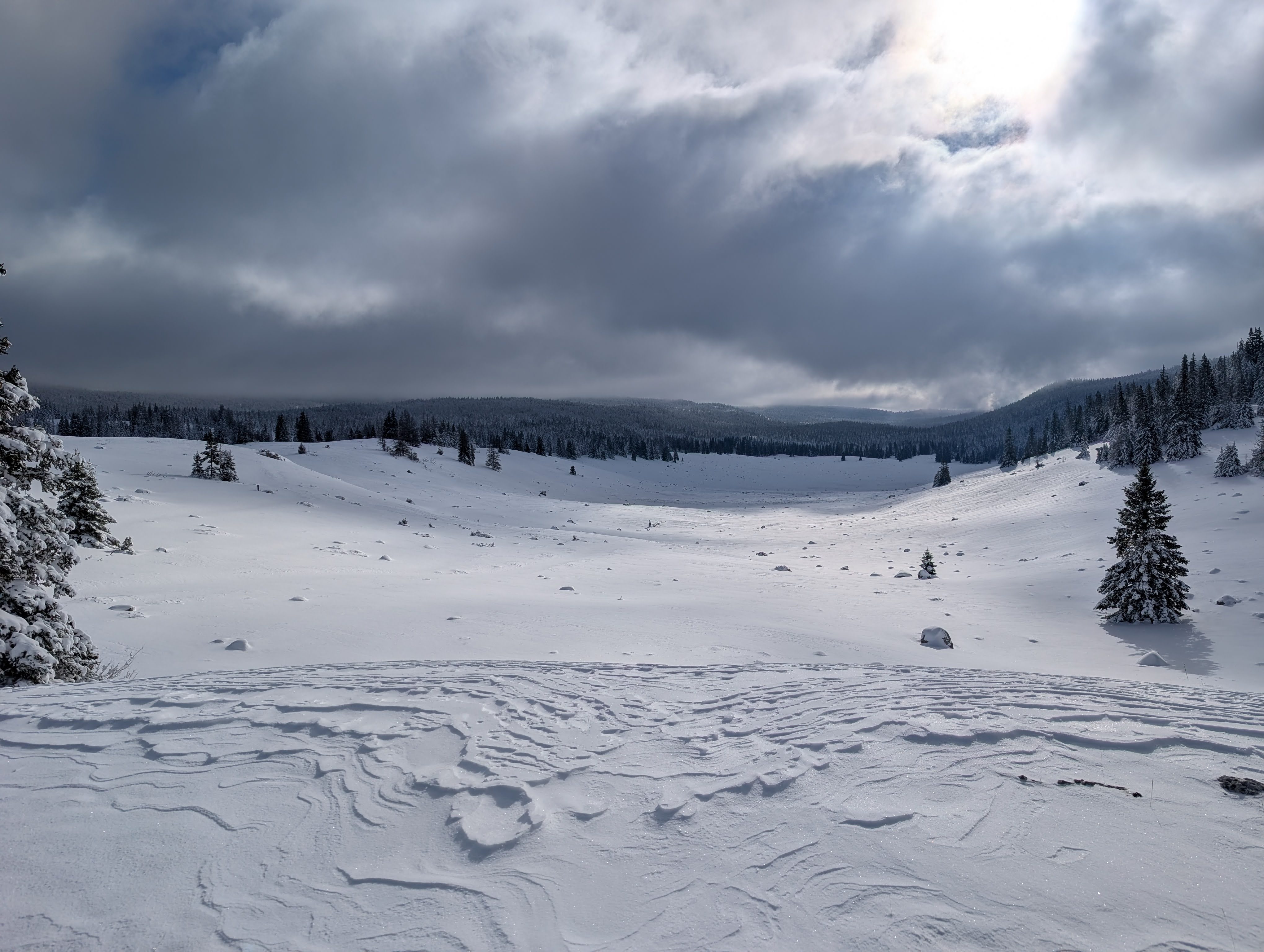 Magnifique sortie sur cette entrée des hauts plateaux! Sauvage au possible ce jour où nous ferons la trace tout le long dans une belle neige fraîche.