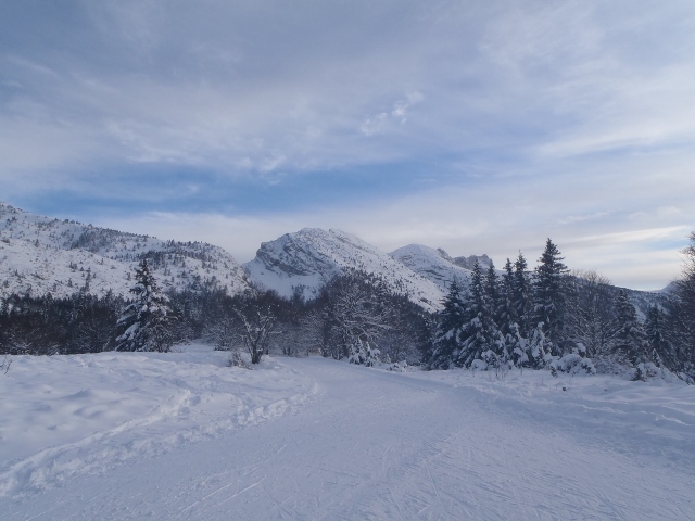 Le retour peut s'effectuer par la route forestière des Fayolles, large piste rarement damée car c'est la liaison entre le domaine du val de Lans et celui des Allières... et vue que le val de Lans n'est pas régulièrement tracé faute de neige abondante, vous serez tranquille.