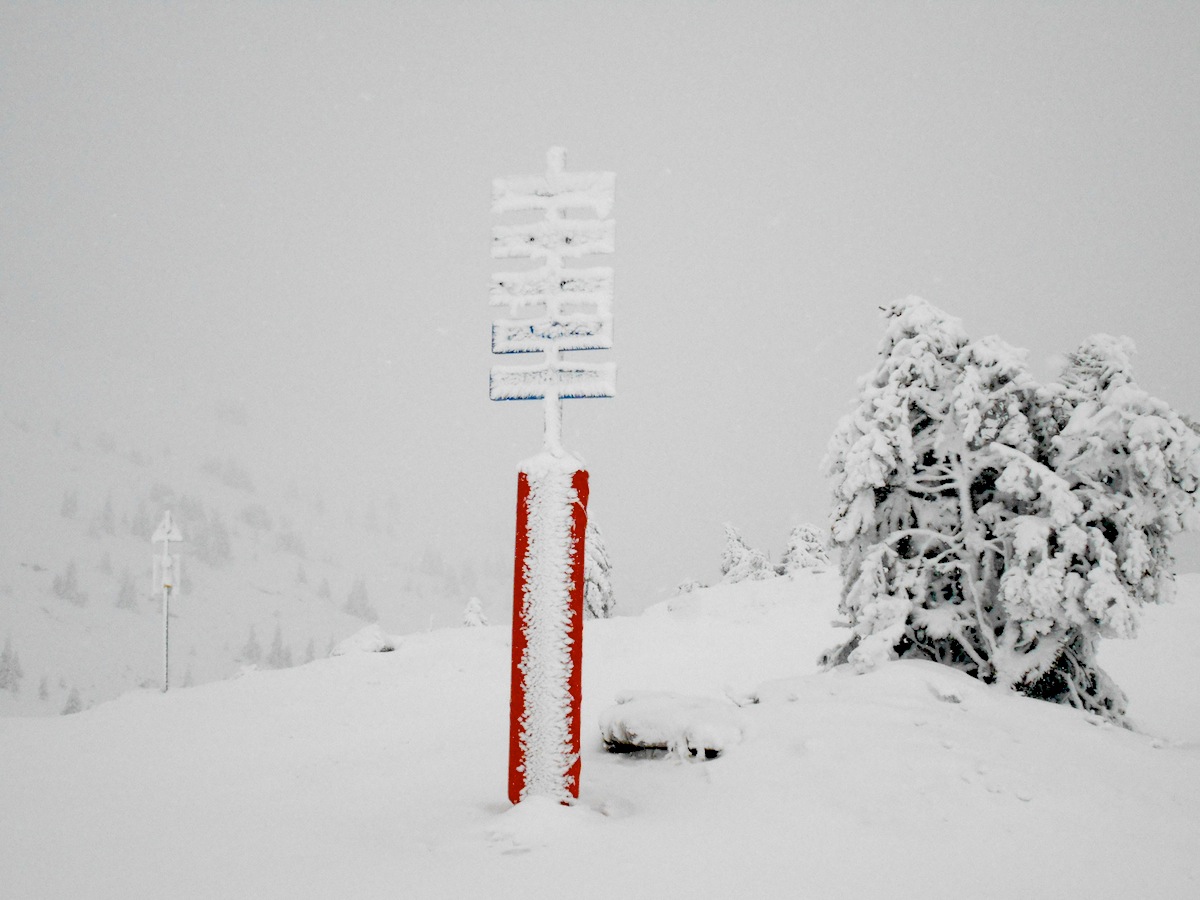 Chutes de neige en quasi-continu, quelques brèves et timides éclaircies.