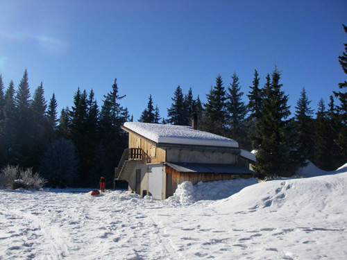 La cabane de Gerland et sa fontaine, qui coulait très bien, contrairement aux autres sources enfouies sous la neige.