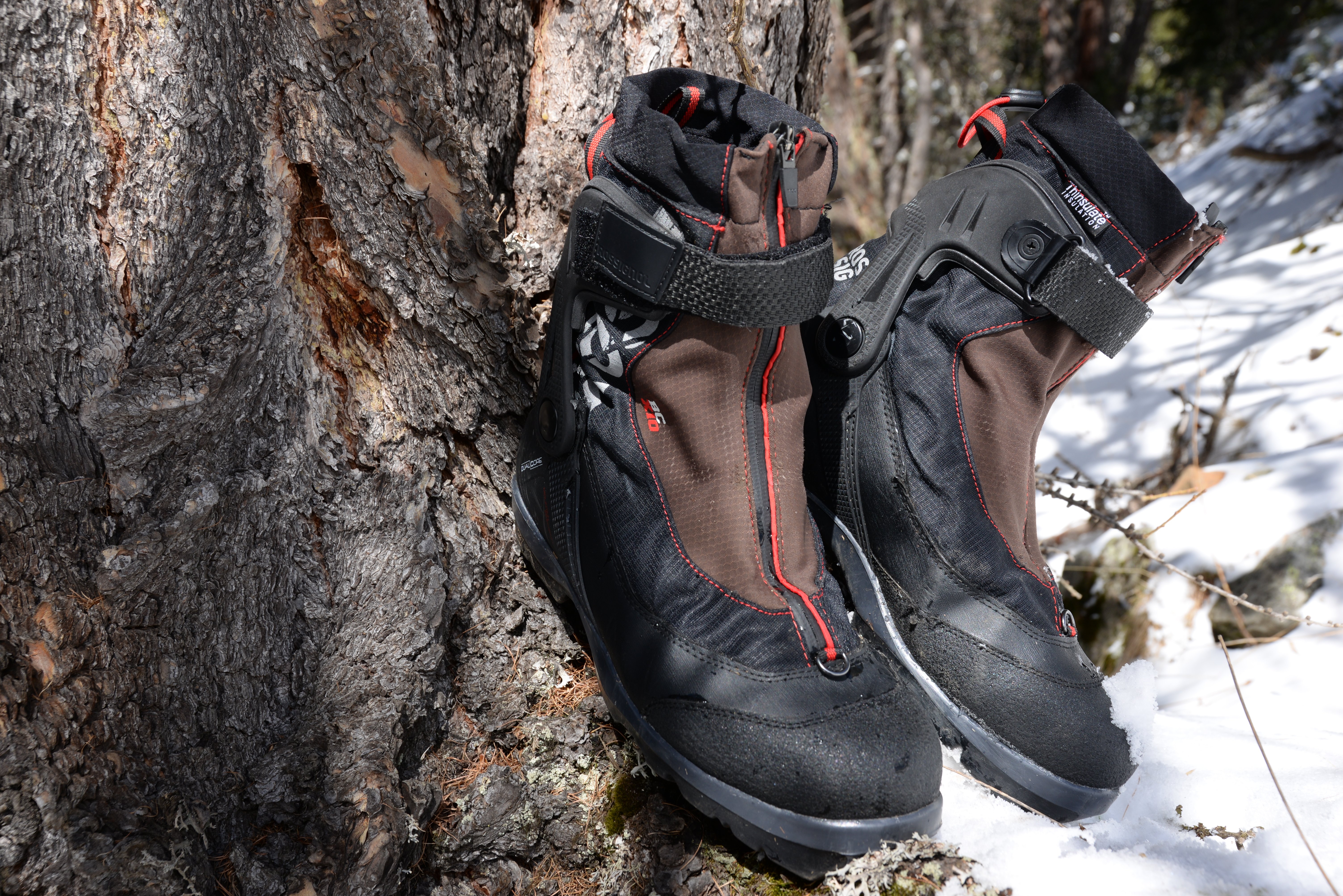 Qu’elles soient en norme 75mm ou en NNNBC, les BC X10 ont des tiges de maintient des chevilles, présentent également sur les chaussures nordiques de skating (évidemment plus conséquentes sur les chaussures de backcountry), permettant d’atteindre une certaine rigidité qui sera la meilleure alliée du contrôle par la tenue du pied et la conduite des skis. J’ai bien retrouvé cette rigidité latérale lors de mes descentes en télémark léger. Le maintient pourrait à mon sens être plus performant par la présence d’une boucle de serrage au niveau du coup de pied pour un meilleur calage du chaussant.