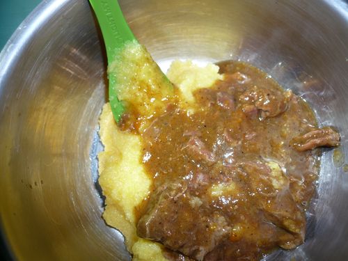 Le plat a été préparé par Dardus sans être trop cuit. En effet, les morceaux sont déjà cuits mais les fibres de la viande ne se désagrègent pas trop quand on remue le plat pour réchauffer la préparation. Les morceaux tiennent bien à la cuisson.