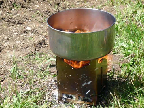 Le plat a été réchauffé doucement sur un réchaud à bois pendant plusieurs minutes.