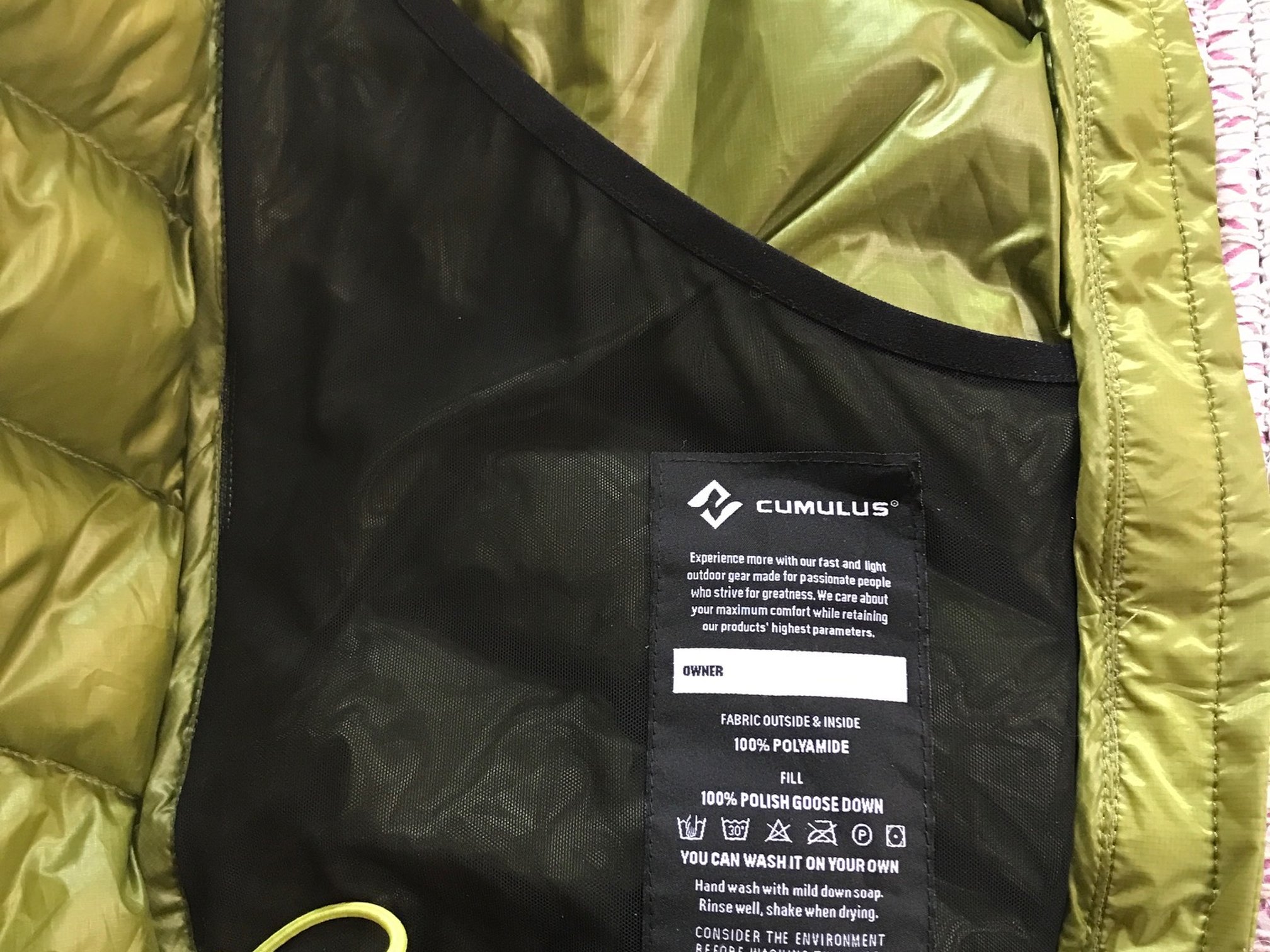 L'accessoire essentiel de l'Endurance reste bien sûr son garnissage. Le duvet utilisé par Cumulus provient d’oies polonaises, dont la réputation et l'excellence ne sont plus à faire. Cumulus utilise, pour l'ensemble de sa gamme, un duvet de 850 cuin en norme européenne, ce qui équivaut à une valeur de très haut niveau et correspond à un excellent pouvoir gonflant, gage de très bonne protection thermique.