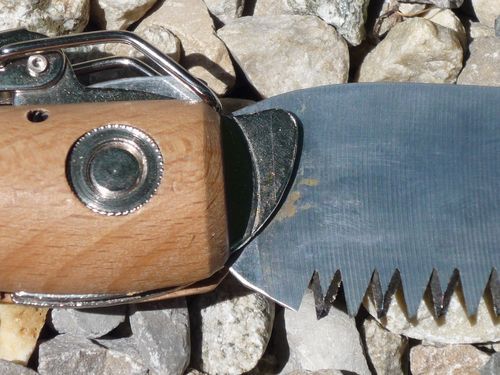 Opinel a développé une scie fermante (n°18) de qualité avec un manche en hêtre très résistant. La coupe de la lame est rapide et franche. La prise en main est très bonne et agréable.