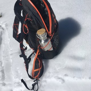 Son compartiment unique, accessible depuis la moitié supérieure du sac grâce à deux curseurs, suffira amplement à ranger le minimum nécessaire à ce genre de sortie (les peaux de phoque, un kit de fartage, une veste, une sous-couche de rechange, des vivres de course et une poche d'hydratation). Le tout pour un sac à dos vide pesant 295 g !