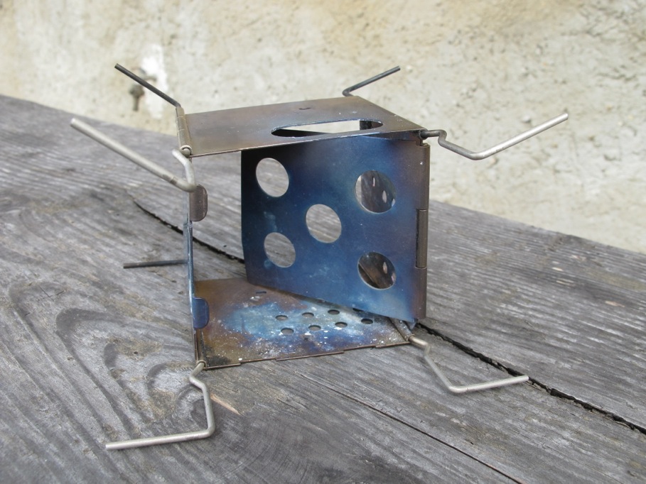 Les 2 orifices d'alimentation sur le côté du foyer permettent d'entretenir le feu sans soulever la récipient mis à chauffer. Cela évite de perturber et de ralentir sa montée en température. Autre avantage, on peut mettre à brûler d'assez grands morceaux de bois qui dépassent du foyer et qu'il suffit de pousser progressivement à l'intérieur du réchaud.