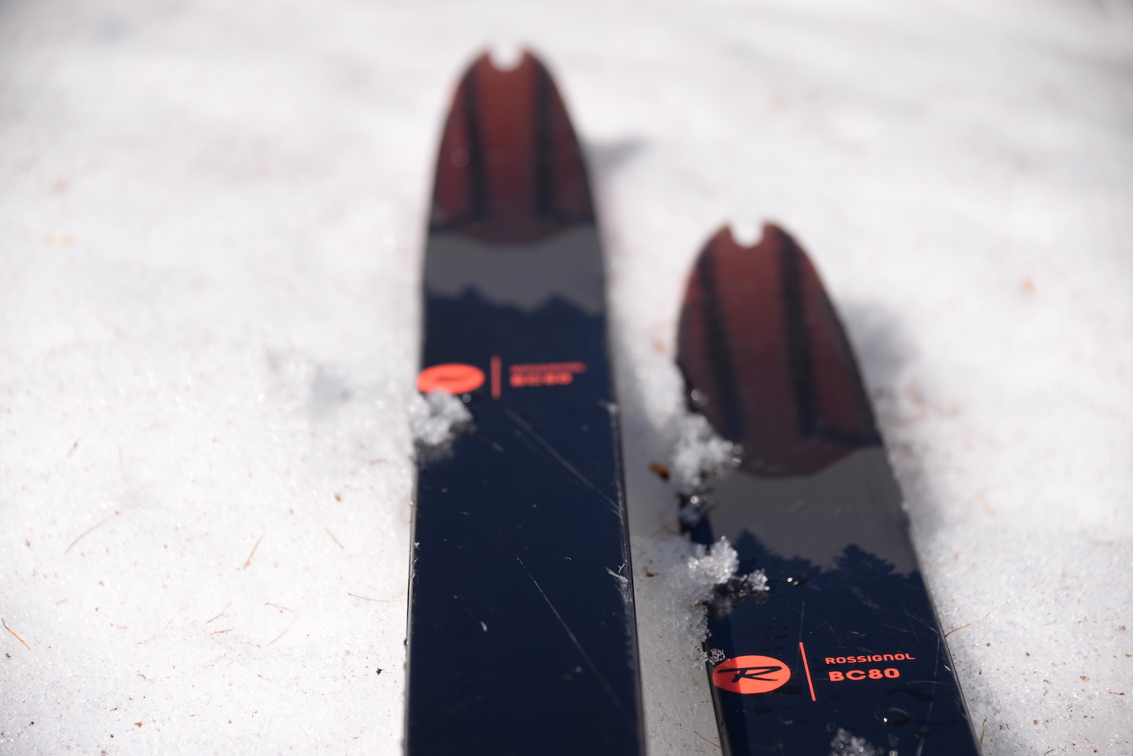 Pour trouver un bon équilibre entre glisse et accroche, ces skis ont un galbe très marqué. Pesant 70kg, ces Rossignol BC 80 Positrack m’ont apporté une super glisse. Pour avoir plus d’accroche, dans les montées (sans peaux), une taille inférieure aurait été plus appropriée. Il est encore une fois important de regarder la taille des skis, mais par rapport au poids du skieur. Afin de bénéficier de la meilleure retenue possible, les skieurs légers pourront s’orienter d’avantage vers des skis courts, où il sera plus facile de contraindre le ski pour avoir de l’accroche. Un skieur plus lourd perdrait en glisse sur des skis courts due aux frottements trop important des écailles, par conséquent des skis plus longs seraient plus adaptés.