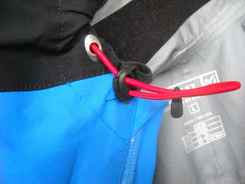 Cette «cuirasse» a cependant une petite faille ! En effet, il est regrettable que les petits oeillets sur les côtés et à l’arrière de la capuche qui assurent le passage des cordons de serrage, ne soient pas protégés par un rabat ce qui empêcherait (en partie ?) d’en faire des points de pénétration pour l’eau.