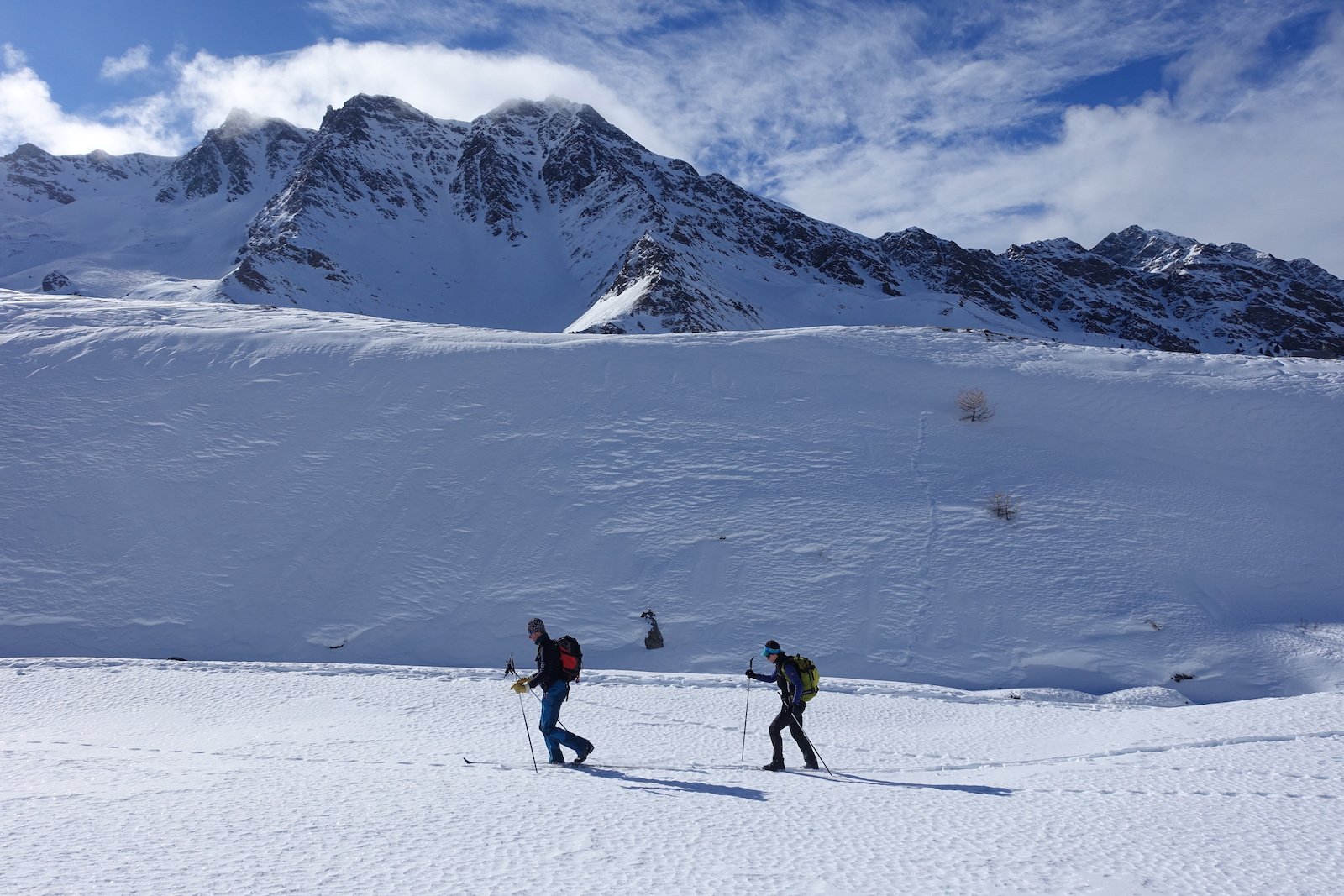 A la montée depuis le pont (2 340 m) sous la chapelle de Clausis il faut éviter les talus raide près du torrent, les contourner en cas d’épaisseur de neige significative)